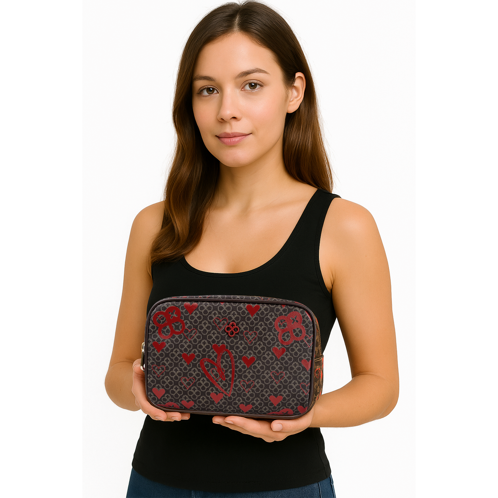 Cosmetiquera Pequeña Mod. Ji248 Marca Jaime Ibiza® Chocolate Corazones